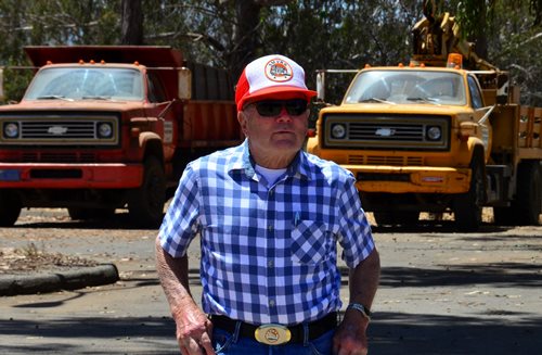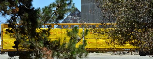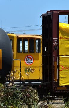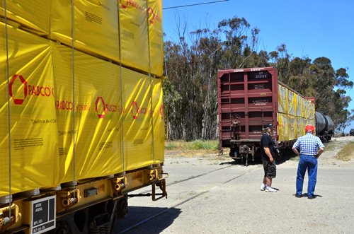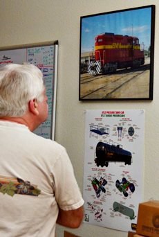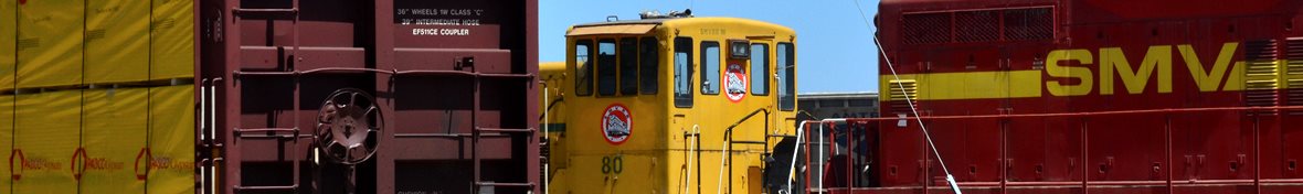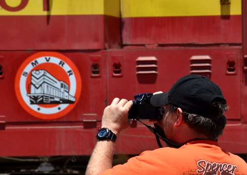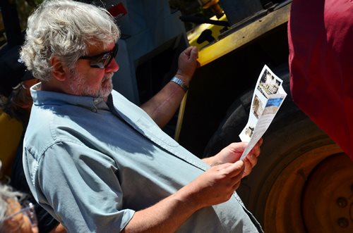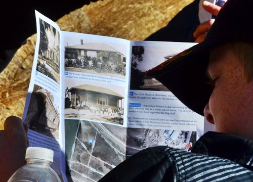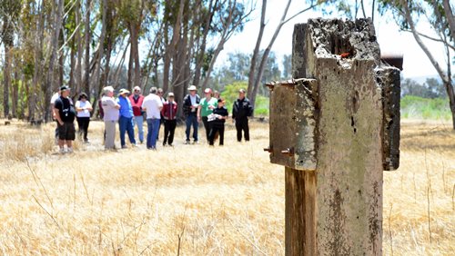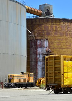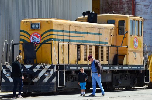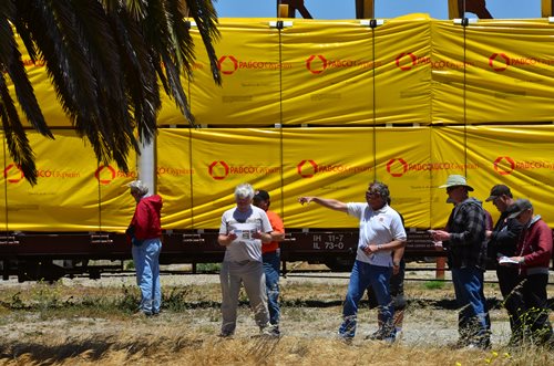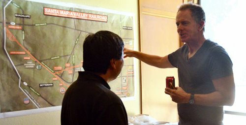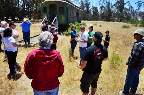 Rob handled the BBQ. The youngest Friend of the Santa Maria Valley Railroad. Betteravia Brochure and Self-Guided Tour (PDF). At left the group visits the site of the Betteravia schoolhouse. The post in the foreground was part of the school's flagpole system. All three locomotives were recently patched with fresh logos. Links to various websites with photos of the sugar mill are on this page (down the left side). |
